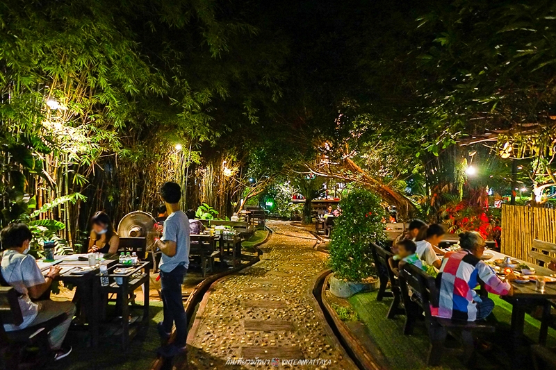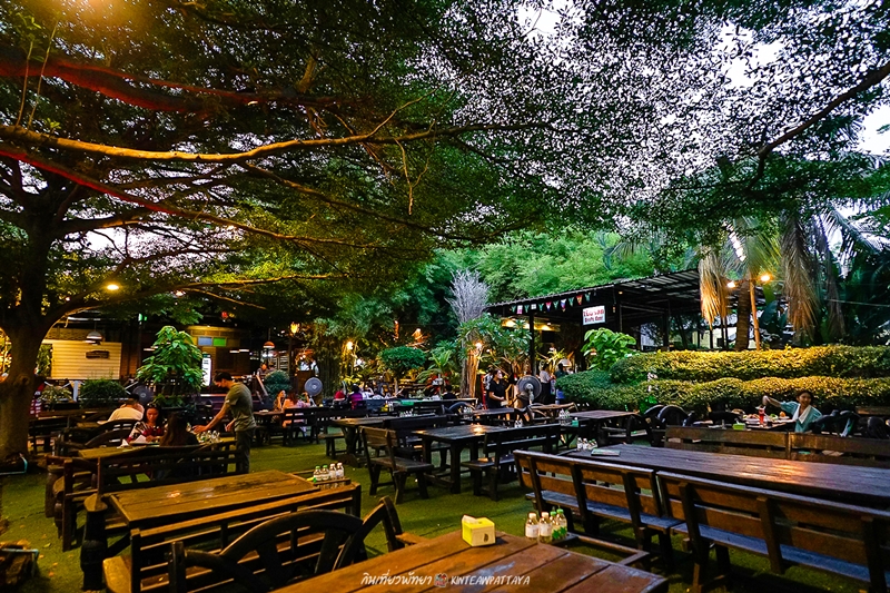 ร้านใหญ่โตกว้างขวาง ร่มรื่นเขียวขจี และมีห้องแอร์ เลือกนั่งได้ตามสะดวก
