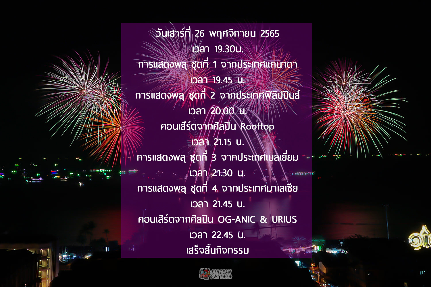 กำหนดการ เทศกาลพลุนานาชาติพัทยา 2022