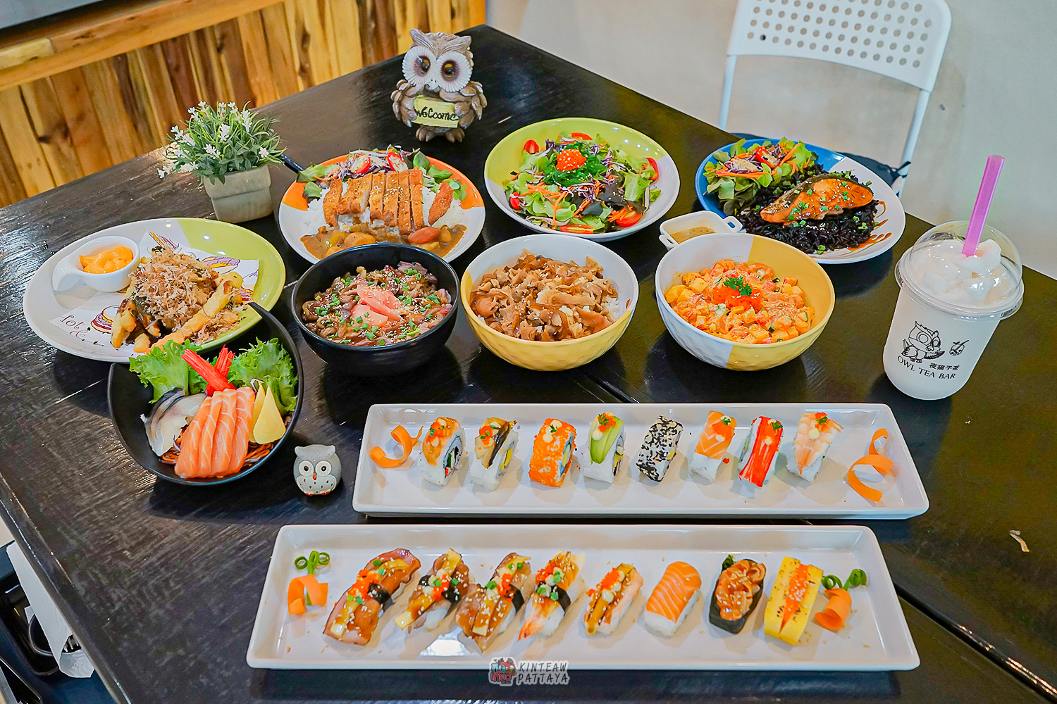 เปิดแอพเดลิเวอรี่สั่งได้เลยทีร้าน ข้าวปั้น ฮ.นกฮูก อยู่เชิงสะพานข้ามมอเตอร์เวย์ฝั่งหนองปรือ ถ.ชัยพรวิถี เริ่มต้นที่10บาทเอง‼️ หรือจะโทร.มาสั่งแล้วแวะมารับเองที่ร้านก็ได้ เมื่อก่อนมีแต่ซูชิ เดี๋ยวนี้เค้าพัฒนาขึ้น มีเมนูอาหารญี่ปุ่นเพิ่มมาอีกหลายเมนู อย่างข้าวหน้าเนื้อโคขุนย่างเทอริยากินี่ทีเด็ดเลยนะ ไม่แพงด้วย แล้วก็ยังมีเมนูเครื่องดื่มพวกนมหมีปั่น ชาเขียวส้มยูซุ สดชื่นมาก และอื่นๆอีกเป็นสิบๆเมนู