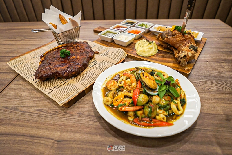 เค้กมะพร้าว ถ้ามาเจอต้องรีบสั่งเลย ส่วนเมนูอาหารที่สั่งมาวันนี้ แหม..จะเรียกว่ากับแกล้มก็พอจะได้ ทั้งไก่ทอดเกาหลี สเต๊กเนื้อ ขาหมูเยอรมัน ทะเลผัดฉ่า ซี่โครงอบซ๊อสบาร์บีคิว อร่อยทุกจาน ยิ่งได้ซานมิเกล บลังก้าด้วยซักแก้วนะ เพลินเลย เหมาะจะเป็นร้านที่มานั่งจิบกาแฟ หรือจะมากินข้าว แฮ้งค์เอ้าท์กันตอนเย็นก็ได้ ด้านบนเป็นโรงแรม ห้องพักอย่างดี ราคาหลักร้อย เมาก็นอนซะที่นี่เลย 555+