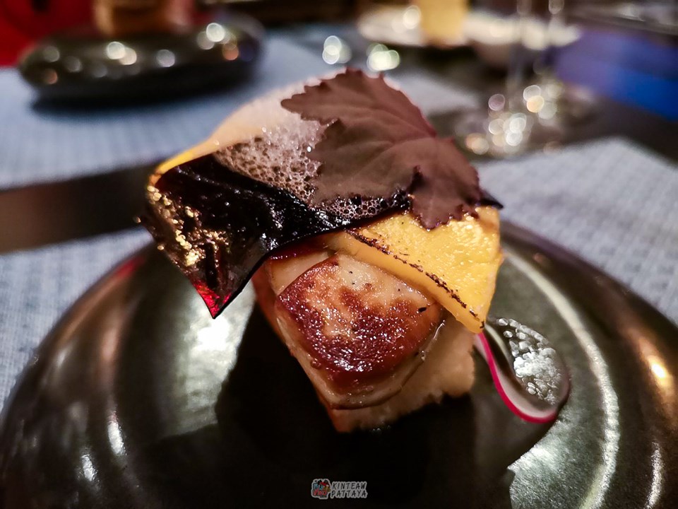 - ตับห่านหอม นุ่มละมุน เป็นออเดิร์ฟเรียกน้ำย่อยกันก่อนสำหรับจานแรก