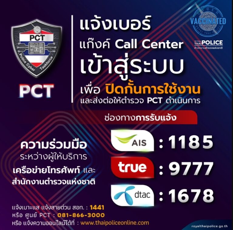เปิดสายด่วนแจ้งเบอร์ “แก๊งคอลเซ็นเตอร์”