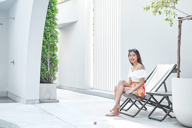โรงแรมโทนสีขาว โดดเด่นด้วยเส้นโค้งที่มีความหมายแทนเกลียวคลื่น จุดเด่นอีกสิ่งนึงคือเป็นโรงแรมแบบ Pet Friendly เราจะเห็นลูกค้าจูงหมา เข็นแมวมาเป็นระยะๆ